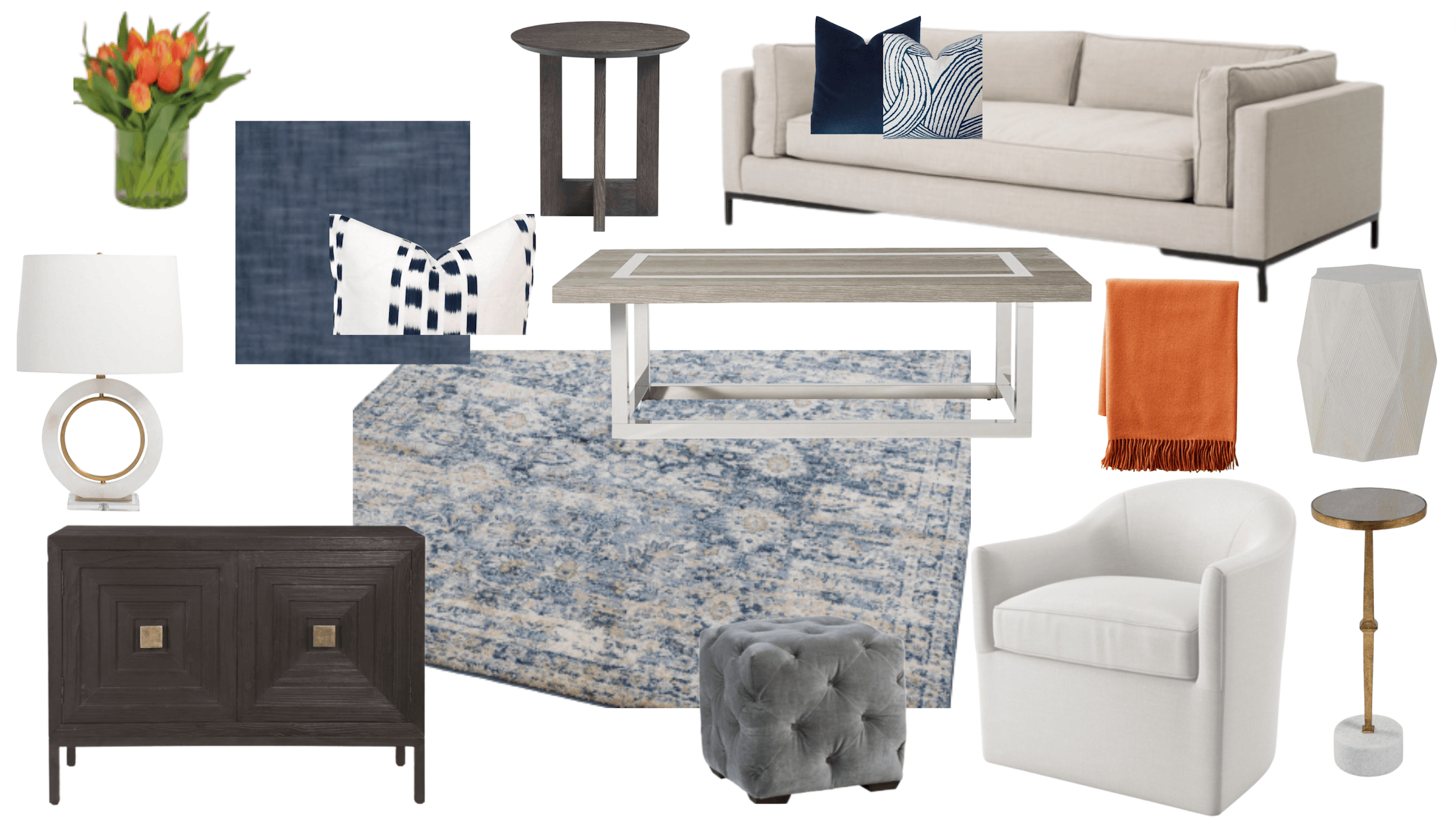 The client requested a living space that could be used for both everyday lounging and entertaining guests. With that in mind, Kristen emphasized stylish pieces that also provided comfort. The sofa has clean lines for a polished look, yet provides much desired comfort. The swivel chairs are great for multi-functional spaces. They provide extra seating for watching TV and create a flow by connecting open plan spaces.
